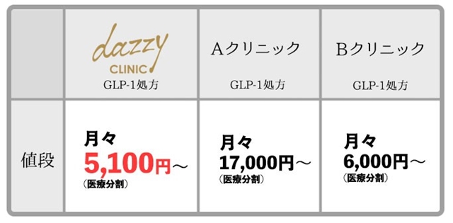 他のクリニックと比較しても圧倒的にデイジークリニックのGLP-1処方が安いのです!!