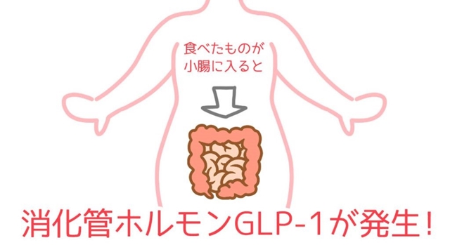 食べたものが小腸に入ると、消化管ホルモンのGLP-1が発生します。